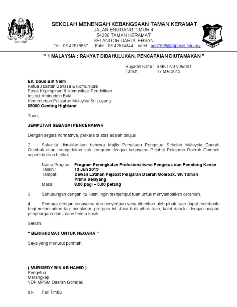 Pin Di 10 Blogger Terbaik Malaysia. UNIT KO KURIKULUM DAN SUKAN SEKOLAH KEBANGSAAN ST. Surat jemputan ceramah.